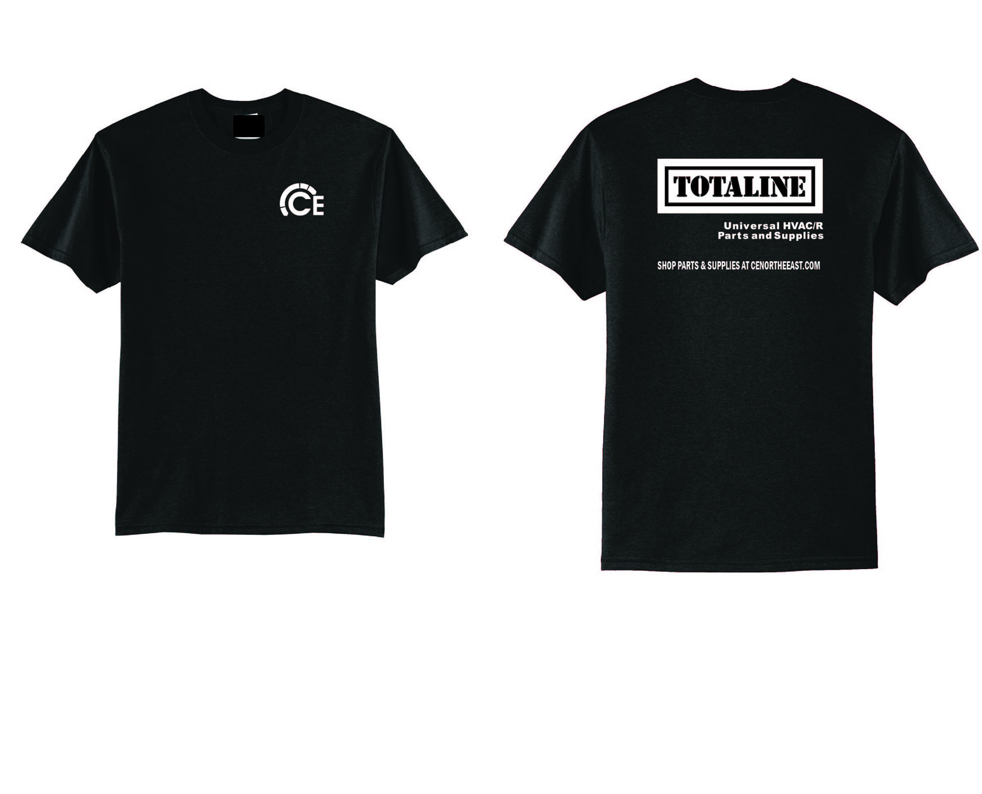 Black tee shirt, Cotton poly blend with CE and Totaline logo
